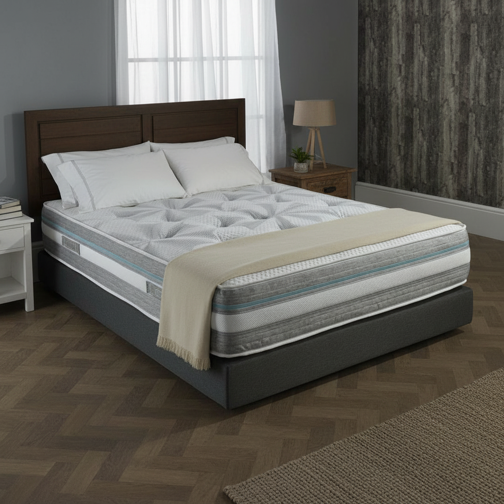 Perfect for sleepers who are looking for an indulgence and luxury feeling mattress. This Hybrid Gel mattress consists of an advanced cool-gel blended with memory foam and 1000 individual zoned pocket springs. This offers all the luxury materials with an adaptive cooling gel addition. It is specifically designed to contour the body without getting you hot and bothered. Throughout the night the mattress will help to support the alignment of the neck and shoulder, leaving you feeling refreshed in the mornings