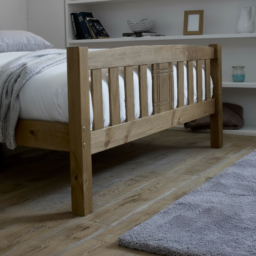 Simple detailed design, the Sena wooden bed frame has a unique charm that is instantly noticeable Honey pine finish.