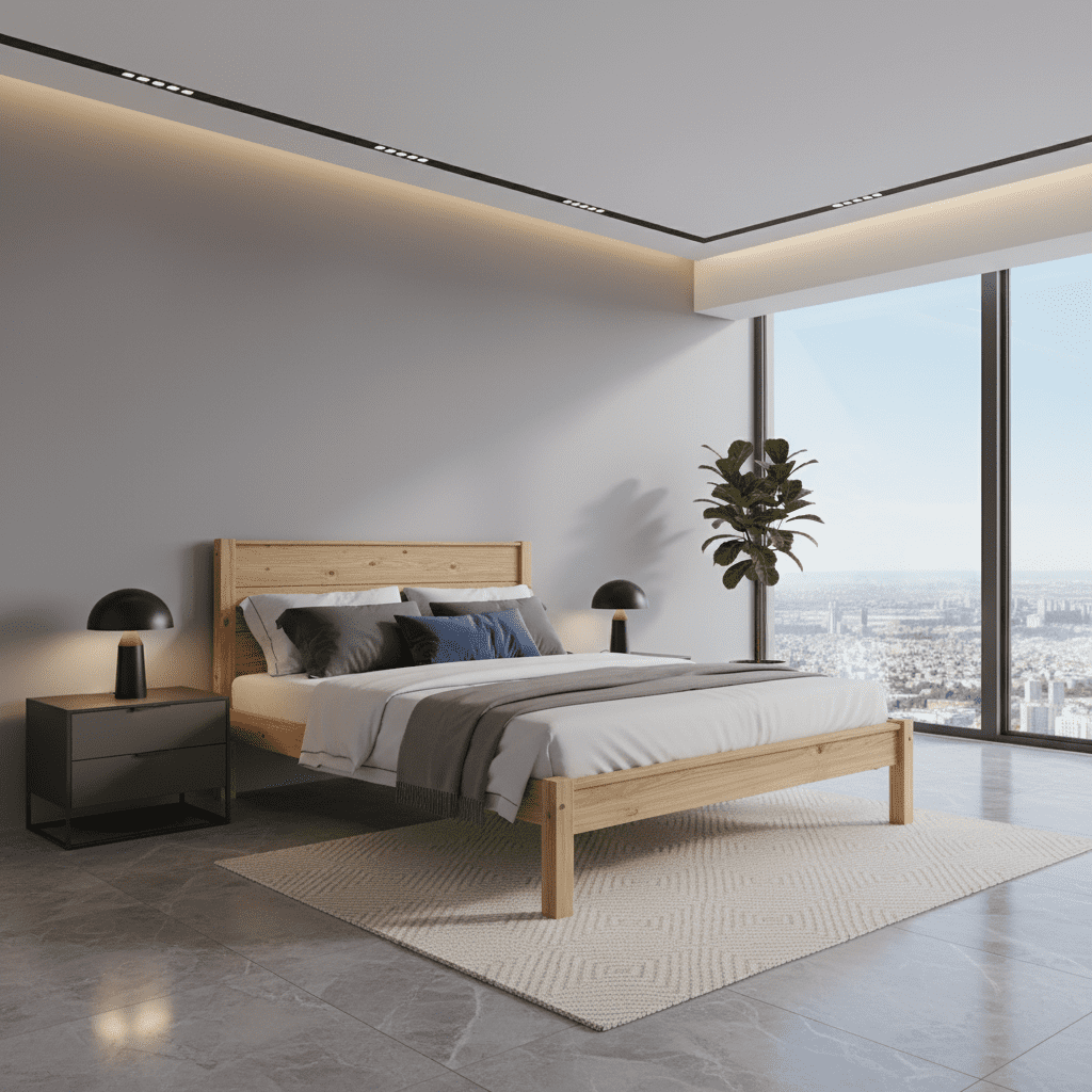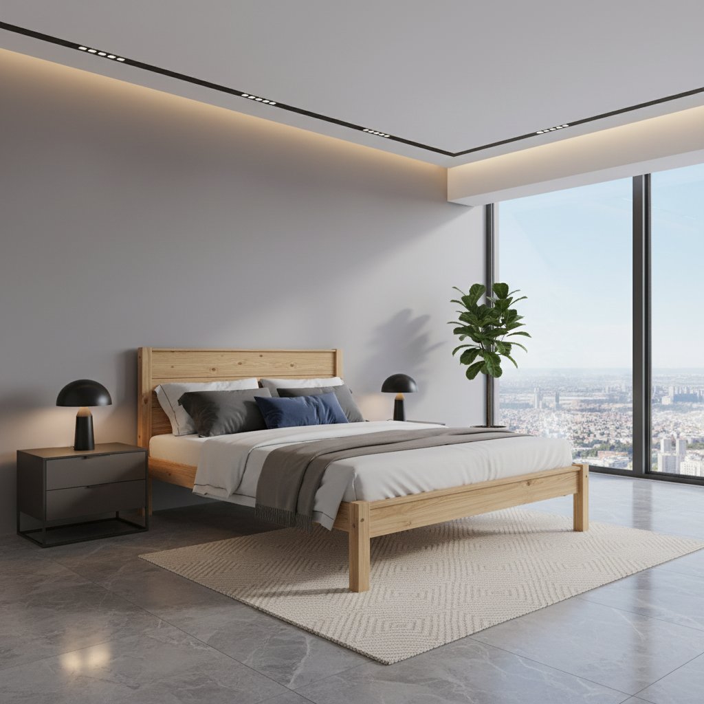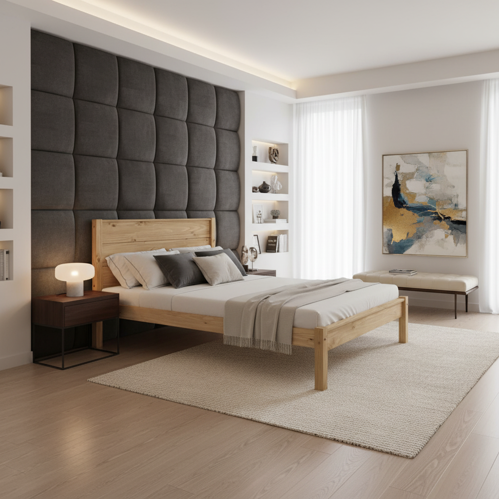 Sturdy wooden bedframe made from waxed pine wood. Solid Wooden Bedframe features a natural finish that adds warmth and cosiness to any bedroom décor. It’s simply yet elegant design ensures it perfectly complements various interior styles. An ideal solution for who value functionality and aesthetics.